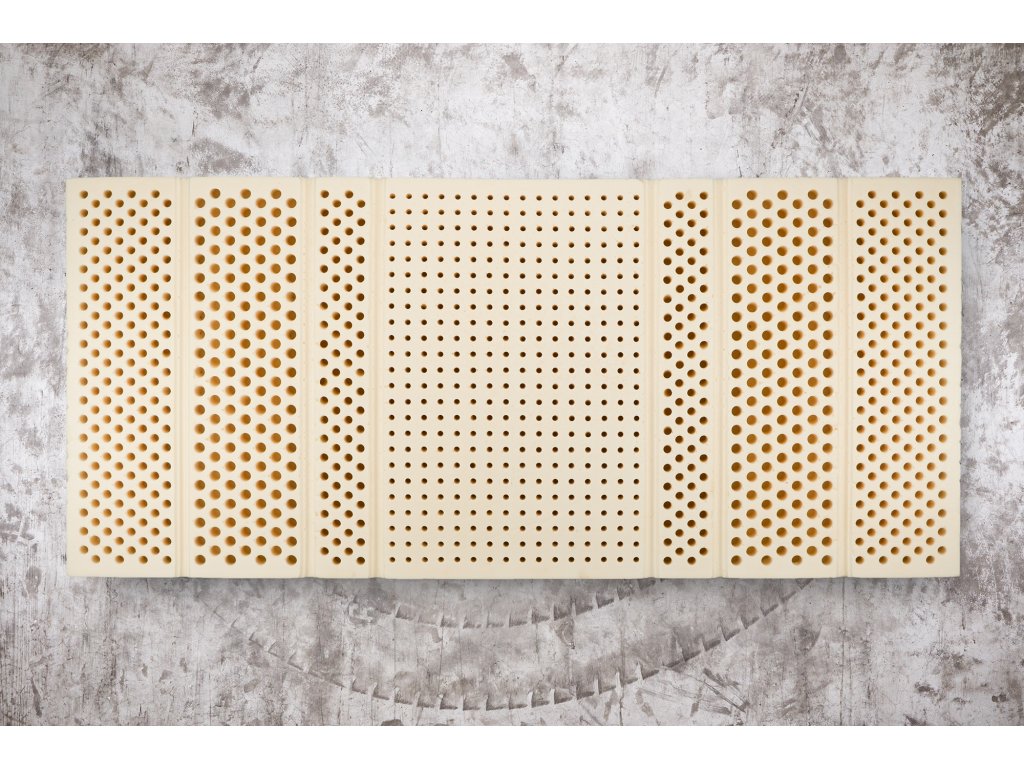 Matrac je vybavený 7 anatomickými zónami, ktoré sa dosahujú pomocou otvorov rôznych priemerov a umiestnenia. Tento systém zón poskytuje optimálnu podporu a pohodlie pre každú časť tela. Hustota latexu 75 kg/m3 znamená, že matrac je našim najtvrdším modelom, čo ho robí ideálnym pre tých, ktorí preferujú extra pevnú podporu.