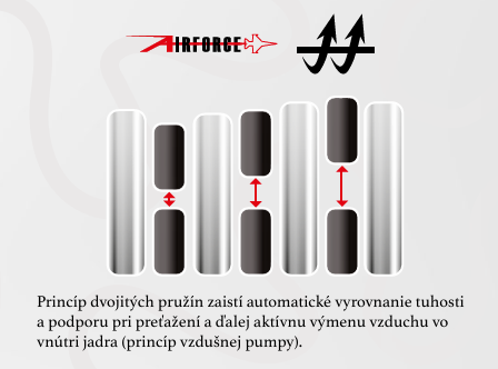 Super-Multi-Pocket AirForce (18 cm) – jadro s viac než tisíckou taštičkových pružín, ktoré reagujú nezávisle na každý pohyb tela. Priečne ventilačné kanáliky poskytujú maximálnu vzdušnosť a dokonalé odvetranie.