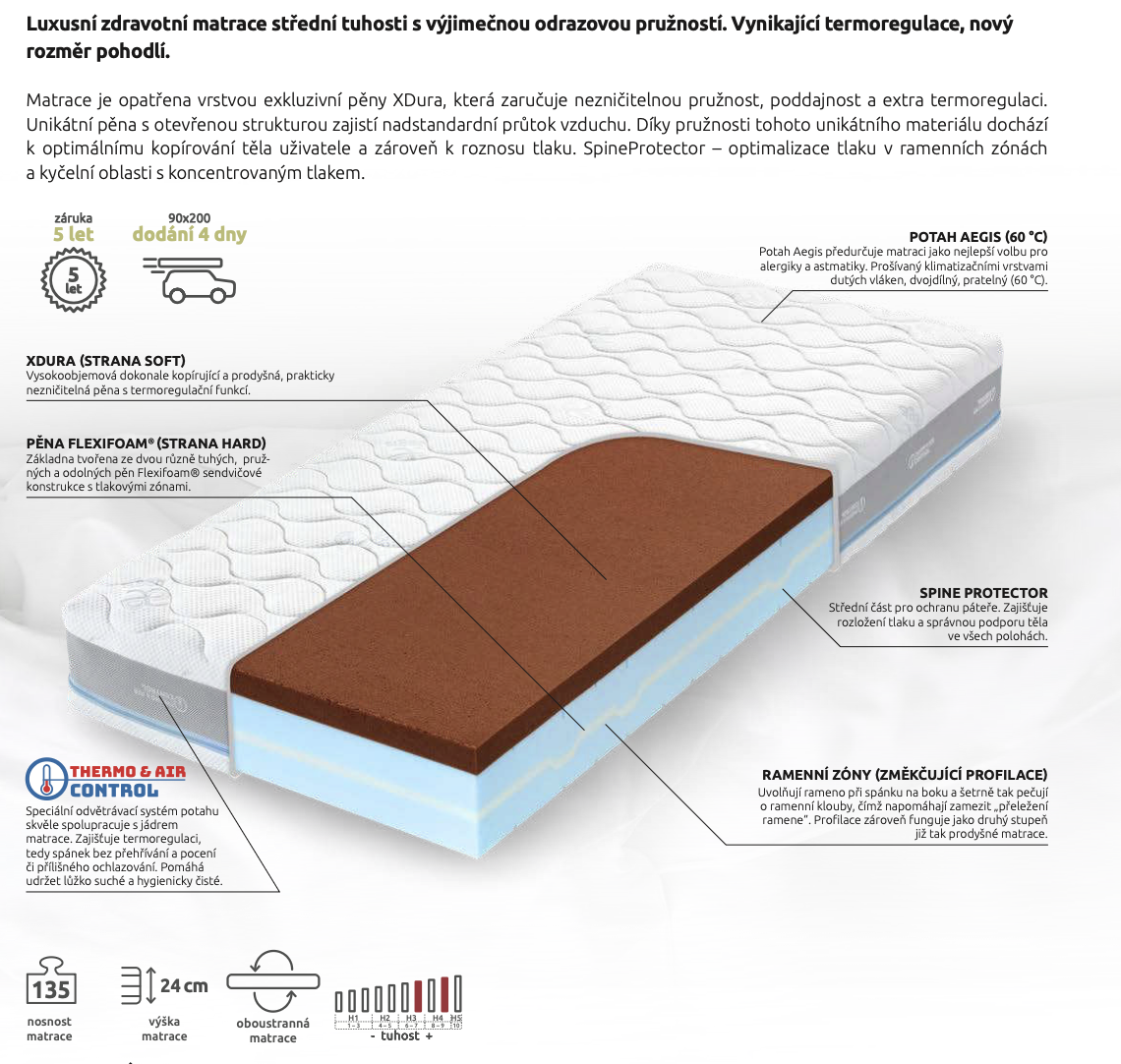 Prémiový zdravotný matrac SpineGuard XD + Matracový chránič Aegis