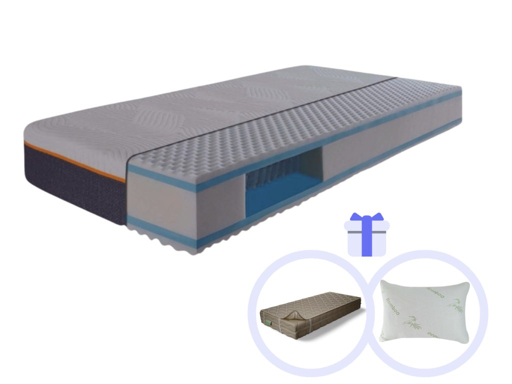 Extra vysoký taštičkový matrac MOONLIGHT Trend + Luxusný chladiaci vankúš so sekanou pamäťovou penou + Matracový chránič Microfiber