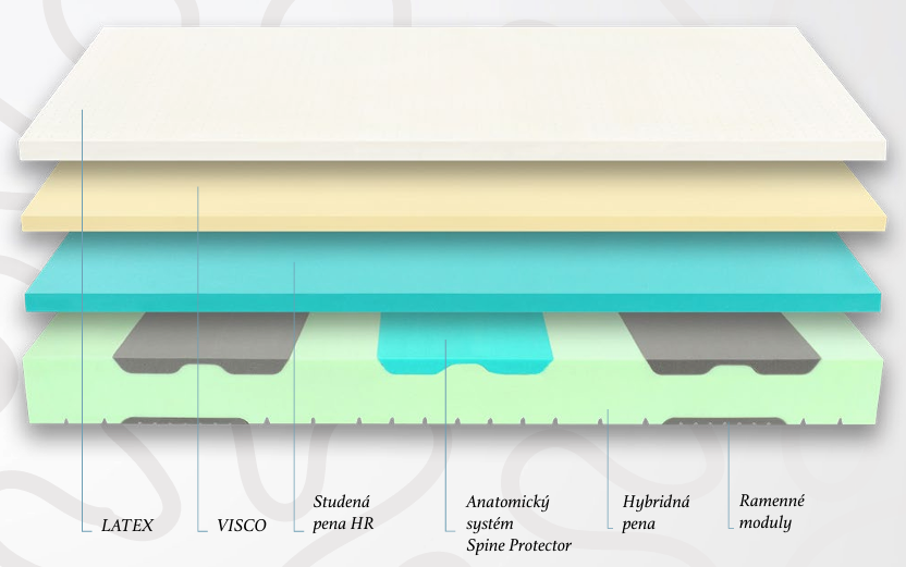 | Typ matraca: | STUDENÁ pena, VISCO pena, Latexová vrstva, Hybridná pena |