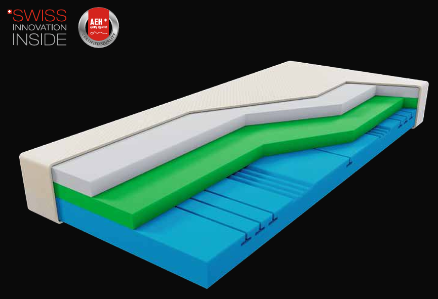 Jeho trojvrstvová konštrukcia, zložená z dvoch pamäťových pien Curemfoam™ a jedného nosného ortopedického jadra, vytvára harmonické spojenie poddajnosti a opory. Každá vrstva bola vyvinutá s dôrazom na maximálne zdravie chrbtice, cirkuláciu vzduchu a minimalizáciu tlaku na kĺby.