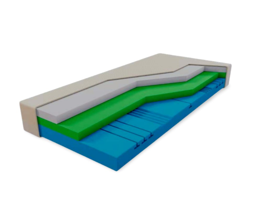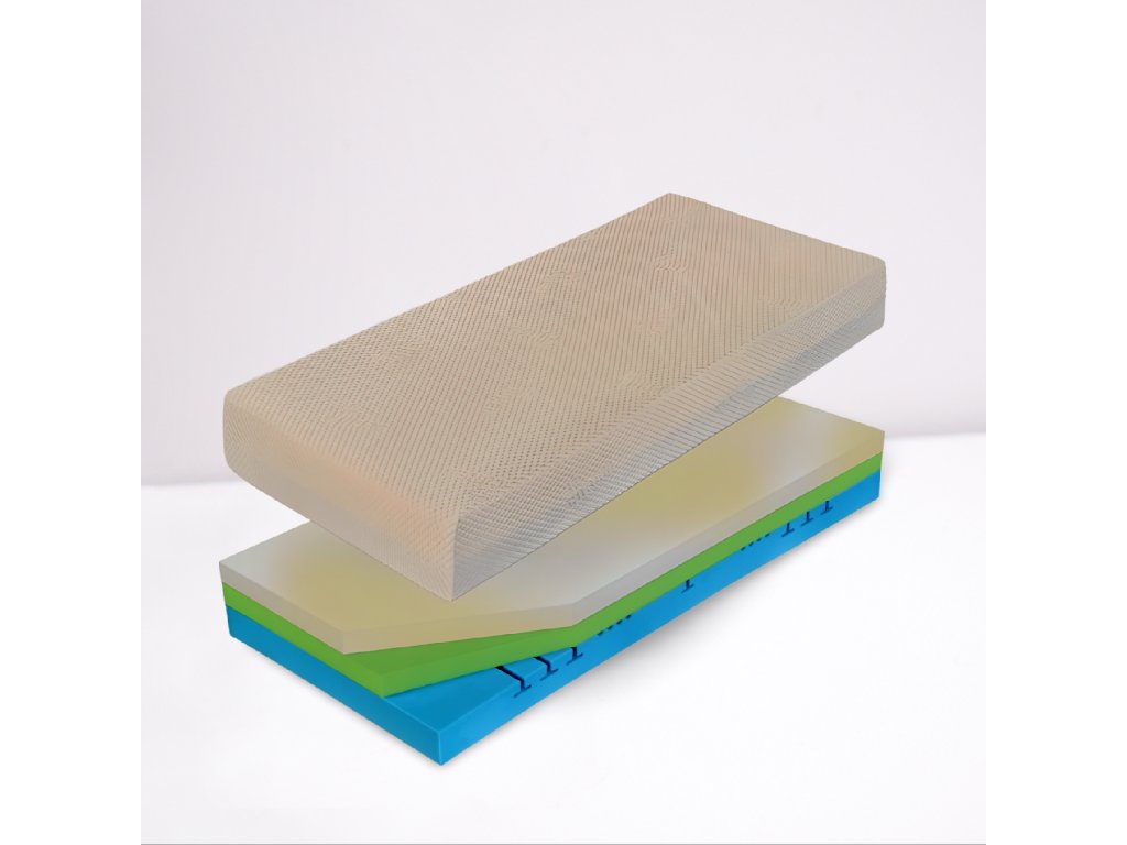 Jeho trojvrstvová konštrukcia, zložená z dvoch pamäťových pien Curemfoam™ a jedného nosného ortopedického jadra, vytvára harmonické spojenie poddajnosti a opory. Každá vrstva bola vyvinutá s dôrazom na maximálne zdravie chrbtice, cirkuláciu vzduchu a minimalizáciu tlaku na kĺby.