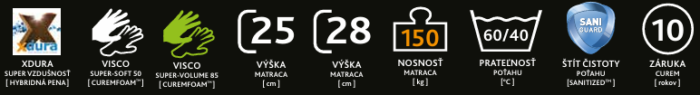 🧱 Konštrukcia: 4 vrstvy – XDURA hybridná pena + SUPER SOFT VISCO 50 + SUPER VOLUME VISCO 85 + BASE MASTER