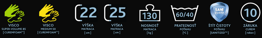 SUPER SOFT / MEDIUM VISCO 50 – jemnejšia pamäťová pena Curemfoam™, ktorá zvyšuje komfort, uvoľňuje svalstvo a zjemňuje celkový pocit z ležania.