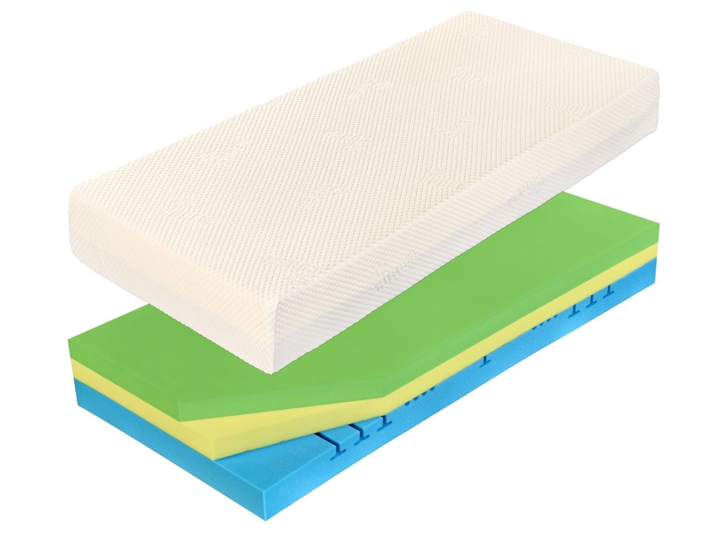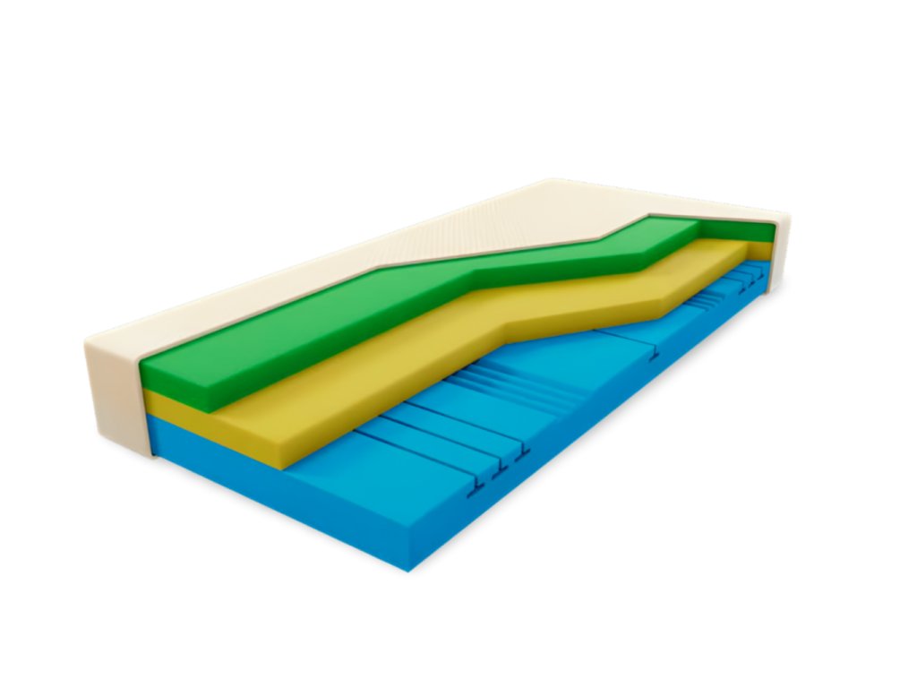 Antibakteriálna pamäťová pena s veľmi vysokou objemovou hustotou vytvára efekt odľahčenia a rovnomerne rozkladá hmotnosť tela. Podporuje chrbticu, uvoľňuje tlak a pomáha navodiť pocit „beztiaže“.